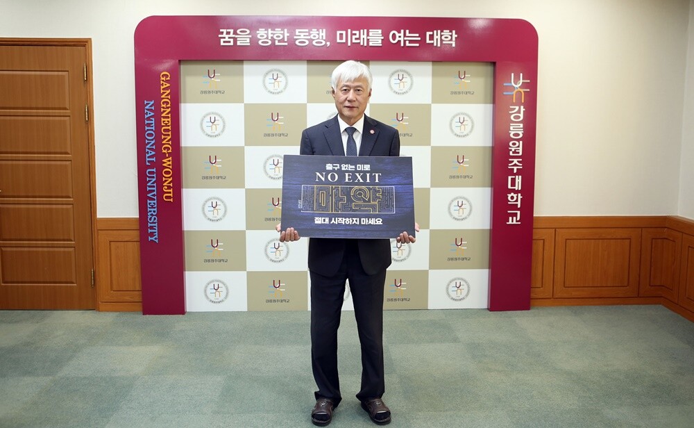 [대학저널 온종림 기자] 반선섭 강릉원주대학교 총장이 5일 마약범죄 예방을 위한 ‘NO EXIT’ 릴레이 캠페인에 동참했다.