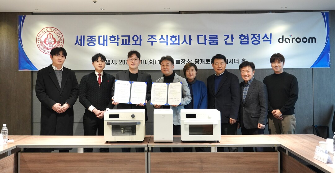 주요 협약 내용은 ▲상호 이해와 협력 증진을 위한 교류 확대 ▲㈜다룸 홍보 활동 시 세종대학교 UI(교표 및 로고 등) 활용 ▲세종대 대양 AI센터 내 조리실습실 환경 개선을 위한 물품 기부 등을 골자로 한다.