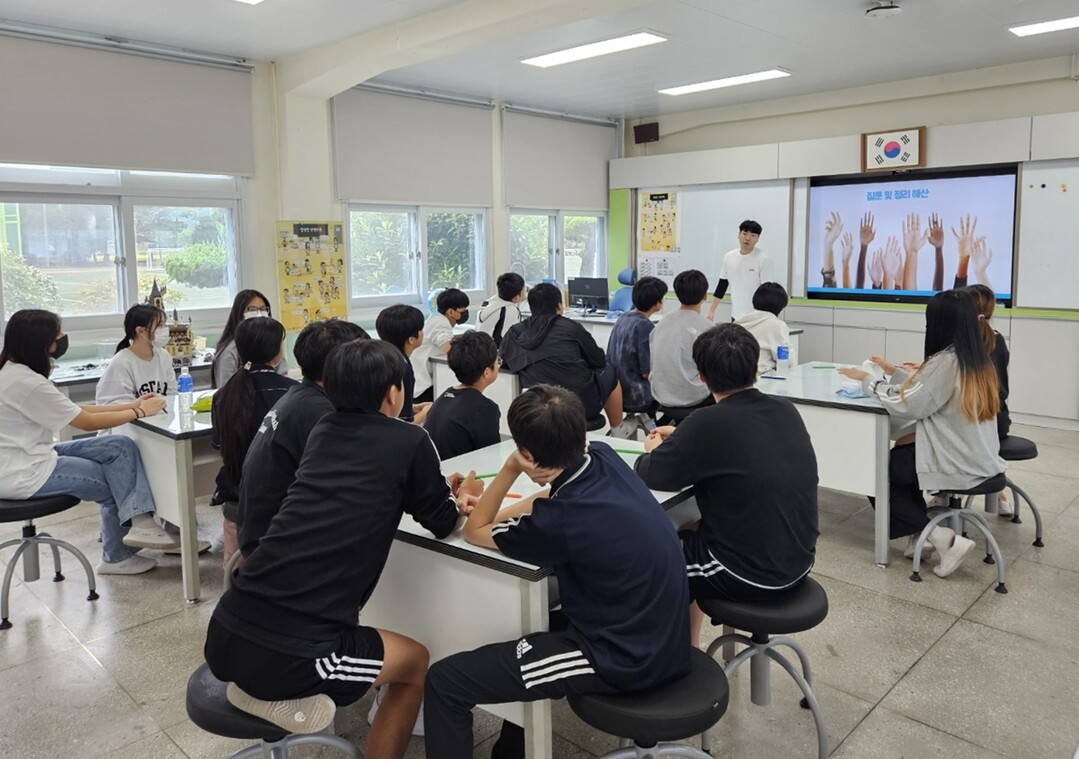 순천대 사범대 졸업생과 재학생이 전남 지역 농산어촌 학교 방문해 지역 특화 산업 연계 진로·진학 정보 제공했다. 사진=순천대 제공 |