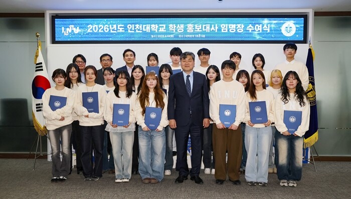 [대학저널 온종림 기자] 인천대학교가 13일 ‘2026년도 학생 홍보대사 임명장 수여식’을 개최하고 제26기 학생 홍보대사 21명을 공식 임명했다.