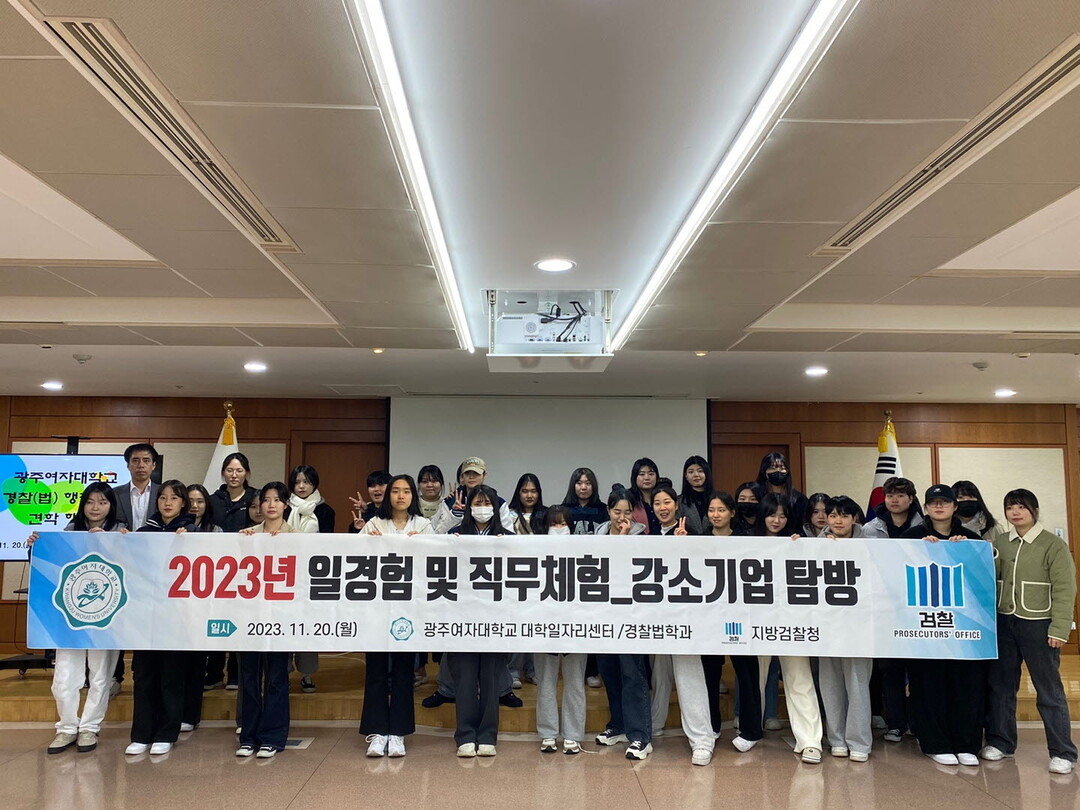 [대학저널 이선용 기자] 광주여자대학교 경찰법(행정)학과가 지난 20일 광주지방검찰청을 방문, ‘2023년 일 경험 및 직무체험 강소 기업 탐방 프로그램’을 진행했다.