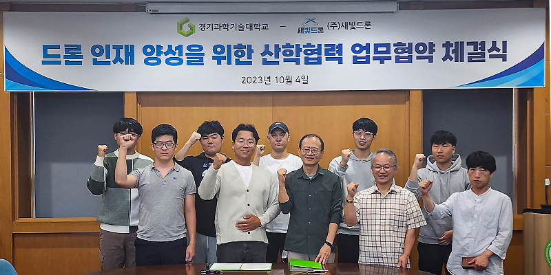 [대학저널 온종림 기자] 경기과학기술대학교 모빌리티공학과가 지난 4일 ㈜새빛드론과 ‘드론인재 양성을 위한 산학협력 업무협약’을 체결했다.