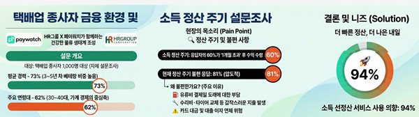 조강연 페이워치코리아 대표는 “물류 현장의 최전선에서 우리 사회를 연결하는 배송기사분들에게 가장 필요한 것은 긴급한 상황에서 신속하게 사용할 수 있는 재정적 유연성”이라며, “HR그룹과의 이번 협력은 근로자가 자신의 정당한 노동의 대가를 대출이라는 굴레 없이 필요할 때 꺼내 쓰는 선진적인 금융 복지 문화를 확산시키는 중요한 계기가 될 것”이라고 밝혔다.