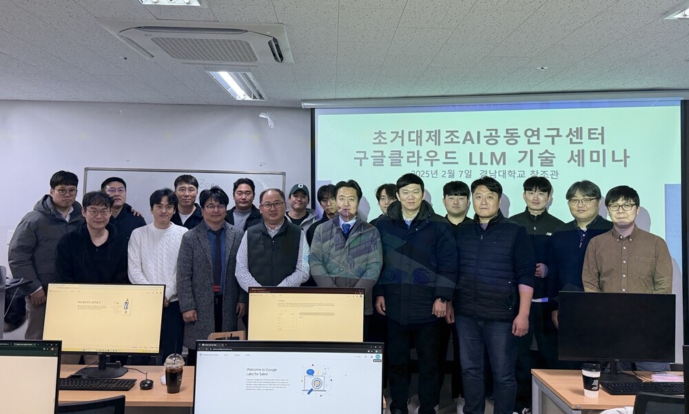 지난 1월 구글클라우드 미국 본사 방문 이후 후속 조치로 마련된 이날 세미나에는 구글클라우드 이상규 매니저, 전병찬 데이터매니지먼트 스페셜리스트, 박경표 AI/ML스페셜리스트 등과 함께 경남대학교 초거대제조AI공동연구센터 연구진(참여교수, 연구원, 학생연구원)과 소르테크 제조AGI연구소 연구진이 참여했다.