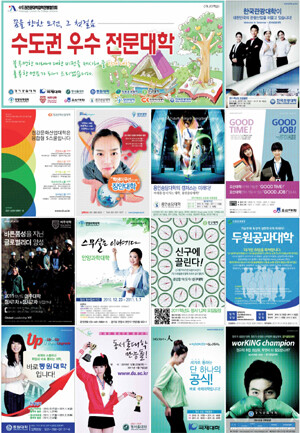 특히 한국관광대학, 장안대학, 신구대학, 두원공과대학 등 13개 전문대학은 "꿈을 향한 도전, 그 첫걸음 수도권 우수 전문대학"이라는 슬로건을 내세워 연합광고를 조선일보에 게재했다.