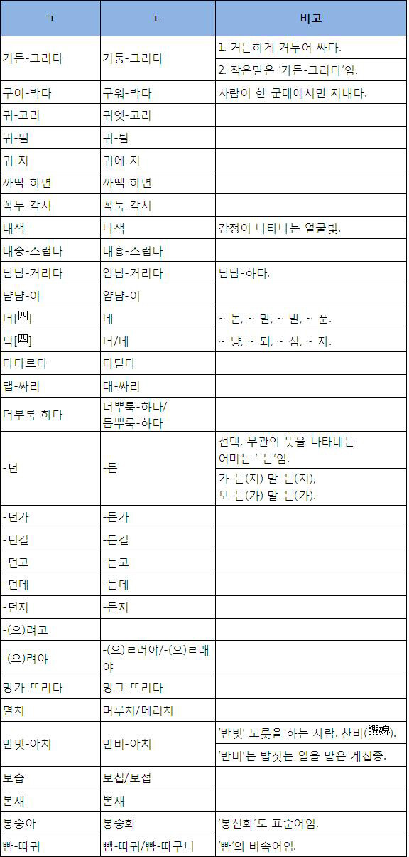 [표준어 규정 - 단수표준어]