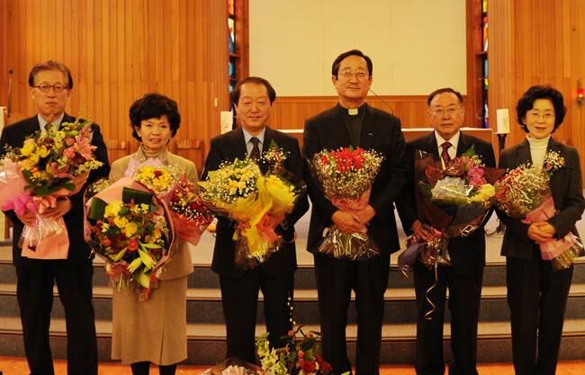 대구가톨릭대(총장 소병욱)는 지난 25일 효성캠퍼스 성당(St. Florian Church)에서 '정년퇴임 및 명예퇴직 교수 감사미사'를 봉헌했다. 이번에 퇴임하는 교수는 윤진영(관현악과), 박석철(관현악과), 김순덕(조형예술학부 회화전공), 장정래(일어일문학과), 제석봉(사회복지학과), 김진숙(피아노과) 교수 등 6명이다. 감사미사에서는 교직원, 학생, 정년퇴임 및 명예퇴직 교수의 가족 등이 참석해 퇴임하는 교수들에게 감사와 존경의 뜻을 표했고 학교 측은 감사패를 전달했다. 소병욱 총장은 "퇴임 교수님들이 남기신 업적과 흔적 하나하나는 후배들의 큰 귀감이 될 것"이라면서 "건학 100년 대학으로서 더욱 힘차게 나아갈 수 있도록 지금까지 쌓아 온 교수님들의 경륜과 학식, 지혜를 다시 한 번 아낌없이 쏟아주시기 바란다"고 말했다.