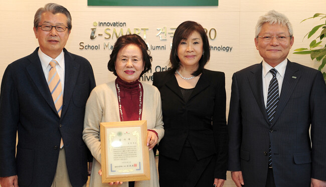 김진규 총장은 이날 유자은 씨와 백대기 동문 가족에게 감사패를 전달하고 “세계적 수준의 ‘The Only One Glocal University’로 당당한 대학의 위상을 갖추어 가기 위해 더 많은 동문, 더 많은 동반자들과 네트워크를 형성하고 인적, 물적, 정신적 자산을 유기적으로 결합해나간다면 학교 발전은 더한층 가속화되리라 확신한다”고 말했다.