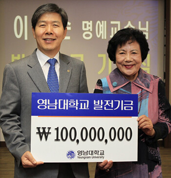 이 명예교수는 “벚꽃이 만개한 교정을 보니 30년 동안 재직한 영남대에서의 추억이 새롭게 떠오른다”면서 “세계무대에서 활동하는 제자들의 모습을 보는 것 이상으로 가치 있는 것은 없다는 생각이 들었다”고 장학금 기탁 취지를 밝혔다.