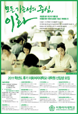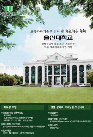 이화여대, 한국외대 등은 대학 고유의 슬로건을 내세우며 대학원 후기 신입생 모집에 박차를 가했다. 울산대는 현대중공업과 KCC가 지원하는 학부 세계일류화사업 시행을 강조하며 학부장 모집과 교수모집 광고를 게재했다.