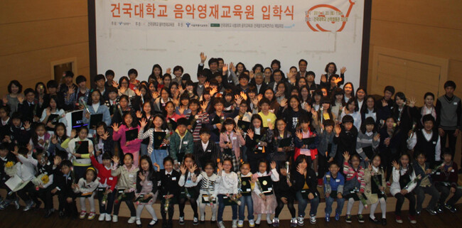 건국대 음악영재교육원(원장 최은식)은 "지난 23일 서울 광진구 화양동 건국대 산학협동관에서 음악영재 장학생 100명을 대상으로 국내외 저명 음악가들이 전액 무료 레슨을 실시하는 '2011 서울시 음악영재 장학사업' 입학식과 오리엔테이션을 개최했다"고 24일 밝혔다.
