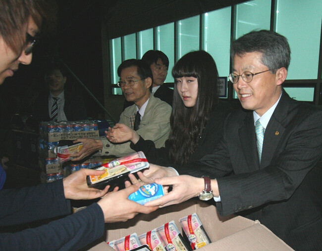 먼저 지난 21일과 22일에는 전운기 총장이 직접 중간고사를 치르는 학생들을 위해 햄버거와 음료수를 나눠줬다. 이틀에 걸쳐 총 1000개의 샌드위치와 음료수가 학생들에게 전달됐다.