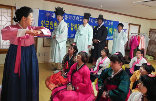 지난해 12월 대구가톨릭대에 재학하고 있는 외국인 학생 20명은 한국인 학생들과 함께 전주한옥마을에서 1박2일 간 고택체험을 했다. ‘다문화 융합 프로그램’에 참가한 것. 이 프로그램은 외국인 유학생과 한국 학생들이 상호교류를 통해 다문화 포용 능력을 개발하고 문화적으로 융합될 수 있도록 돕기 위해 개발됐다. 중국·나이지리아·몽골·타지키스탄 등에서 온 외국인 학생들은 떡메치기·한복입고 절하기·한지공예와 판소리 배우기 등 한국 전통문화를 체험했다. 이 과정에서 자연스럽게 한국인 학생과 공감의 폭을 넓혔다. 외국인 마을 탐방도 학생들에게 인기가 높다. 국내에 소재한 외국인 마을을 방문해 다양한 생활과 문화를 체험할 수 있기 때문이다.