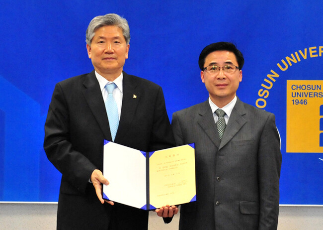 이용섭 (주)다스테크 대표는 11일 조선대 본관 2층 소회의실에서 전호종 총장에게 발전기금을 전달했다.