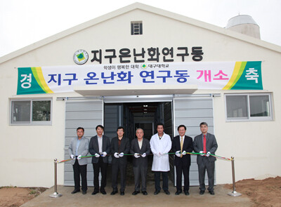 대구대 동물자원학과 최창원 교수팀은 지난 12일 대구대 경산캠퍼스에 축산분야 '지구온난화 연구동' 개소식을 갖고 한우 등 반추동물을 중심으로 한 지구온난화 대응관련 기초 및 응용연구에 돌입했다.