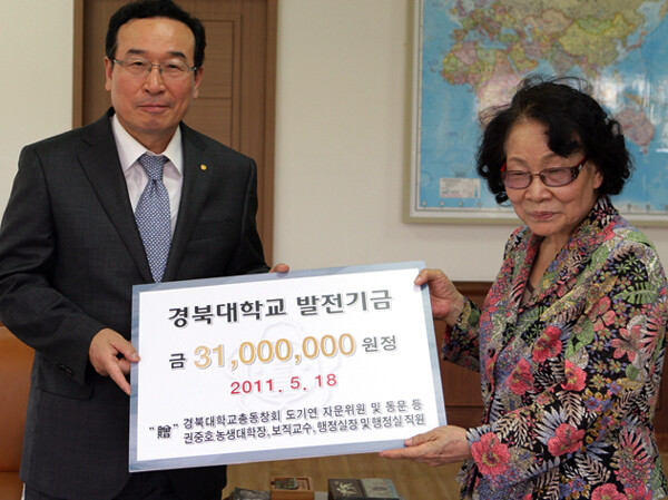 경북대(총장 함인석) 농업생명과학대 발전기금 전달식이 18일 경북대 총장실에서 열렸다.