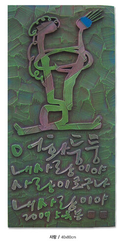 서각은 글씨나 그림을 나무나 기타 재료에 새기는 예술 장르로, 서예와 달리 입체적인 표현이 가능하고 판형에 다양한 색채를 입일 수 있어 작가의 개성을 충분히 살릴 수 있는 장점이 있다.