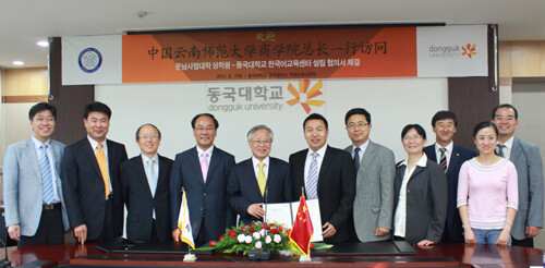 동국대 경주캠퍼스(총장 김영종)는 7일 교내 백주년기념관에서 중국 운남사범대 상학원과 한국어교육센터 설립에 대한 MOU를 체결했다.
