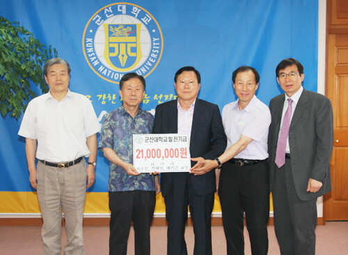 군산대(총장 채정룡) 화학과 최호섭, 장재철, 배선건 교수가 6일 후학양성을 위한 발전기금 2천100만 원을 학교 측에 기부했다.