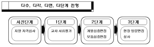 심층면접은 개별과 모둠(소그룹) 형태로 구분돼 두 차례에 시행된다. 현장방문면접과 실사 단계에서는 입학사정관들이 고교 현장에서 교사와 학생을 직접 만나게 되며 이전 단계에서 미처 발견하지 못한 학생의 잠재력을 재평가하는 절차가 이뤄진다.