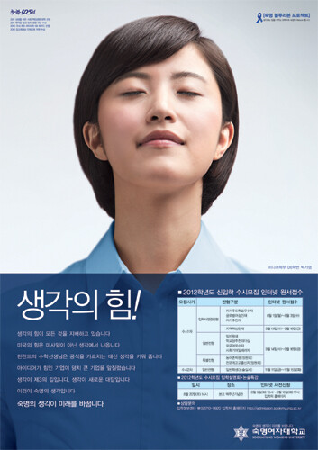 입학홈페이지 http://admission.sookmyung.ac.kr 입학상담연락처 : 입학정보센터 02.710.9920, 02.2077.7155~6
