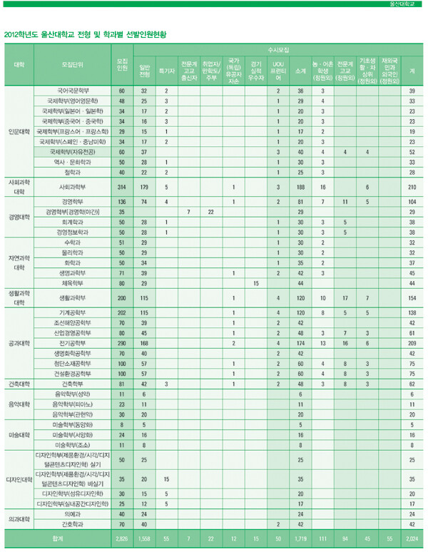 원서접수는 울산대 홈페이지 (http://www.ulsan.ac.kr) 입학안내 사이트에서 가능하며 접수기간은 9월 8일부터 9월 15일까지다.