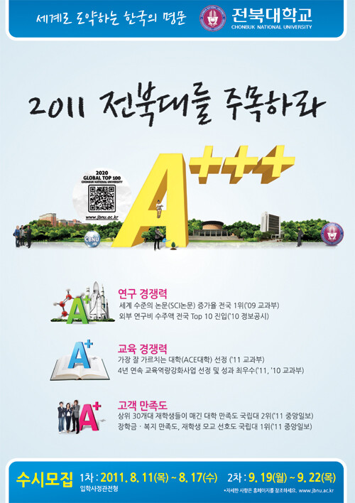 전북대는 교육과 연구, 산학협력, 국제화 분야를 강화하면서 경쟁력 있는 대학으로 거듭나 영국의 글로벌대학평가기관 QS의 평가에서 3년 연속 전국 10위권에 진입했다. 지난해 중앙일보 평가에서는 전국에서 ‘가장 주목해야 할 대학’에 선정되며 대학 혁신의 롤 모델이 되고 있다.