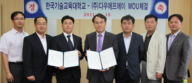 한국기술교육대학교 산학협력단(단장 진경복)은 지난 16일 (주)다우에프에이(대표 윤대중)와 FA(Factory Automation) 관련 정보교류 및 인프라 공유에 관한 양해각서(MOU)를 체결했다.