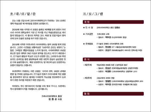 고려사이버대(총장 김중순)가 오는 17일 오후 2시 서울 고려사이버대 캠퍼스 대강당에서 '사이버대학, 10년의 과제와 전망'을 주제로 '2011 온라인대학 학술포럼'을 개최한다.