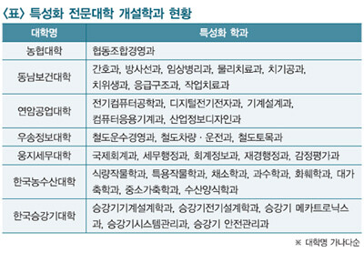 농협대학의 경우 지금까지 졸업생 중 71%가 농협에 취업할 정도로 대표적인 특성화 전문대학으로 평가받고 있다. LG그룹 연암문화재단이 설립한 연암공업대학은 LG전자특약장학생을 선발해 졸업과 동시에 취업시키고 있으며, 한국농수산대학은 농업과 수산분야 종사자 양성을 위해 파격적인 장학 혜택과 커리큘럼으로 주목을 받고 있다. 특히 이 대학 졸업자 중 86%가 영농업에 종사하고 이들 중 23%는 연간 억대 소득을 올리고 있다.