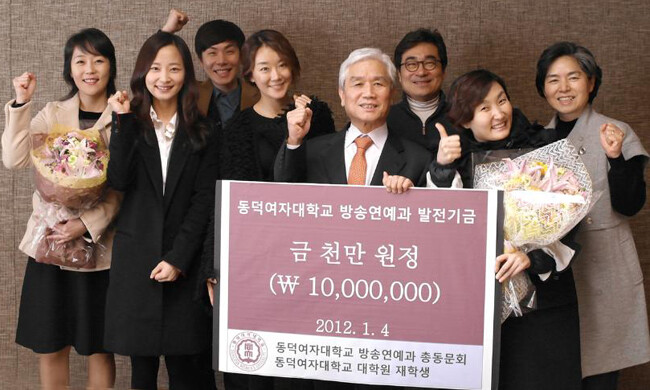 박경림 등 동덕여자대학교(총장 김영래) 방송연예과 동문들이 4일 모교에 발전기금 천만원을 약정했다.