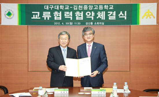 대구대(총장 홍덕률)는 30일 경산캠퍼스 성산홀 소회의실에서 김천중앙고등학교(교장 이태득)와 고교-대학 간 연계교육 프로그램 운영 활성화를 위한 교류협력 협약식을 가졌다.