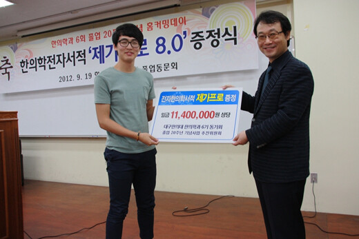 한의과대학 6기 졸업생(동기회장 김재우)들이 졸업 20주년 기념사업(추진위원장 전기영)의 일환으로 한의예과 1학년 114명에게 일일이 한의학 전자서적을 선물하는 뜻깊은 자리가 마련됐기 때문이다.