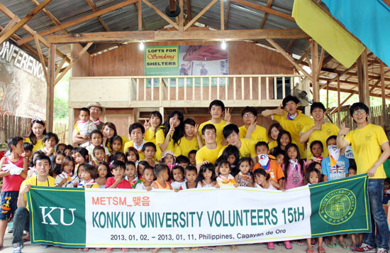 건국대 제15기 성신의 해외 봉사단 가운데 필리핀 팀 16명은 12일간 필리핀 민다나오섬 북부에 위치한 카가얀 데 오로(Cagayan de Oro)에 머물며 한국해비타트(Habitat for Humanity)와 함께 상습 수해 지역에 대한 복구 작업을 벌였다. 또 주거환경이 열악한 현지 주민들을 위한 주거지 건설 작업을 하고 현지 어린이를 위한 교육문화 활동, 마을 주민들을 위한 문화교류활동을 벌였다.