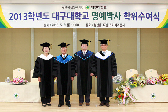 대구대는 6일 경산캠퍼스 성산홀에서 홍덕률 총장, 전영란 대학원장 등 대학 관계자와 학생, 가족 등 200여 명이 참석한 가운데 명예박사 학위수여식을 가졌다.