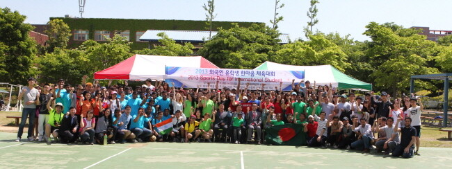 국립경상대학교(GNUㆍ총장 권순기)는 11일과 12일 이틀 동안 대운동장과 학생생활관 농구장에서 외국인 유학생과 GNU Buddy 150여 명이 참가한 가운데 ‘2013년 외국인 유학생 한마음 체육대회’를 개최한다.