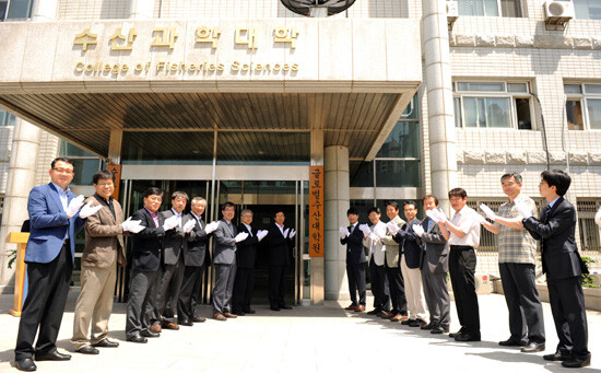 부경대 수산과학대학은 4일 오전 수산과학대학 1층에서 지난 3월부터 운영해온 글로벌수산대학원 현판식을 개최했다.
