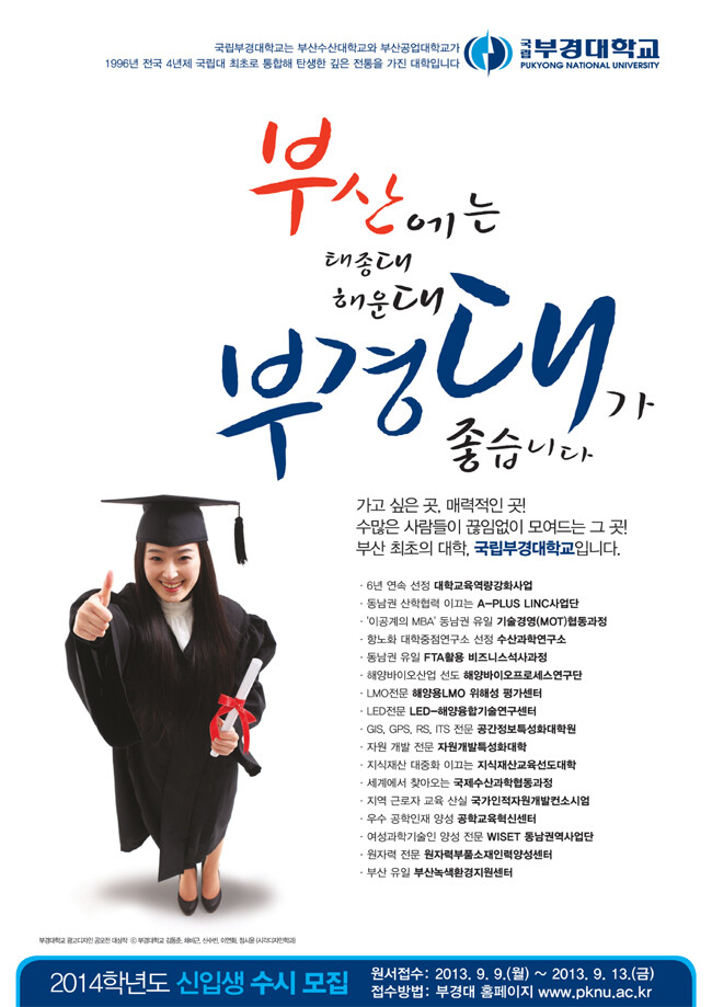 우리나라 해양수도인 부산 광안리 인근에 위치한 국립 부경대학교의 가장 큰 강점은 학문분야가 특성화·차별화되어 있다는 점이다. 부경대는 1996년 오랜 전통과 역사를 지닌 부산수산대학교와 부산공업대학교의 통합으로 탄생했다. 우리나라에서 바다에 대한 연구를 가장 오래한 대학이어서 해양수산 분야 경쟁력은 국내 최고 위상을 자랑한다. 공학분야 역시 전통이 오래되어 기계분야를 비롯 원자력, 환경, 에너지, IT 등의 경쟁력도 뛰어나다.