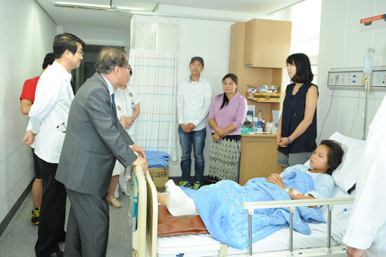 한편 정세현 원광대 총장은 정은택 병원장과 함께 린 양 수술 직후 입원실을 찾아 “학생시절부터 지구촌 이웃과 소통하면서 나눔을 실천해가는 원광대 학생들이 자랑스럽다”며, 방영희 양을 격려하고, 린 양에게는 “어려운 수술이 끝난 만큼 좋은 결실을 맺어 건강한 모습으로 돌아가길 바란다”고 말하면서 학교 주요보직자들과 함께 정성을 모은 금일봉을 전달했다.
