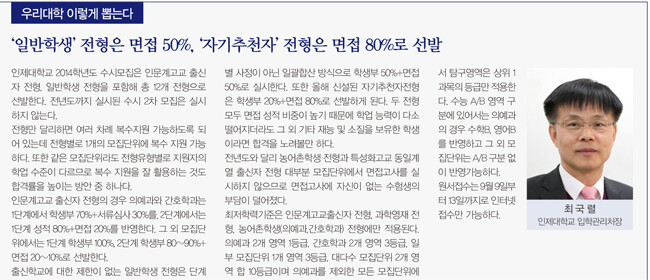 인제대학교는 1932년 우리나라 최초의 민립 공익법인 백병원을 모체로 1979년 인술제세(仁術濟世), 인덕제세(仁德濟世)를 건학이념으로 개교했다. 올해로 백병원 창립 81주년, 개교 34주년을 맞이하는 인제대는 전국 현재 8개 단과대학, 46개 학부(과), 대학원, 인제대학원대학교에 1만5600여 명의 학생들이 학업과 연구에 매진하며 명문사학으로 발전을 거듭하고 있다.