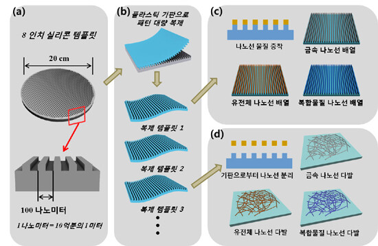 이 패턴을 기반으로 반도체 제조과정에서 널리 쓰이는 박막증착공정을 활용해 폭 50nm(나노미터), 최대 길이 20cm(센티미터)의 나노선을 완벽한 형태로 대량 제조하는데 성공했다.