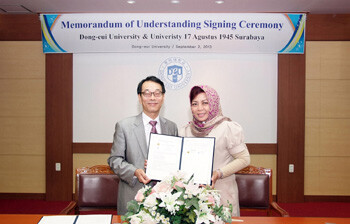 이날 협정식에는 인도네시아 운탁대 이다 아주 부라마사리(Ida Aju Brahmasari) 총장을 비롯해 이사장, 공대학장, 대학원 부원장 등 일행 7명이 동의대를 방문, 분야별로 향후 교류 활성화 및 방안에 대해 논의하고 기숙사, 도서관, 박물관 등의 캠퍼스 시설을 견학했다.