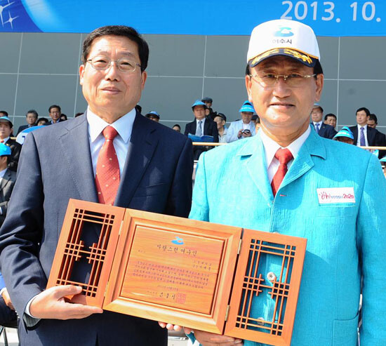 서재홍 조선대학교 총장(사진 좌측)은 15일 진남경기장에서 열린 '2013 여수시민의 날' 기념식에서 김충석 여수시장으로부터 '자랑스런 여수인' 상을 받았다.