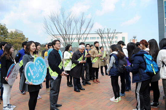 박유나 씨(실무영어과 4)는 “지난해 캠퍼스 분위기를 확 바꾼 '안녕하세요' 캠페인이 진화하고 있는 듯하다. 총장님과 교수님들이 학생들과 다정하게 인사를 나누고 초콜릿까지 선물하니 더욱 좋다”고 말했다.