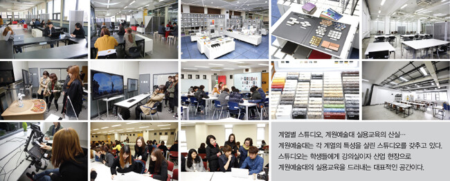 계원예대 교육의 강점은 무엇보다도 ‘스튜디오 중심교육’에 있다. 교육 현장인 대학 캠퍼스가 곧 기업의 현장과 같다. 이렇다보니 자연스럽게 취업에도 포인트가 맞춰진다. 계원예대는 이를 기반으로 앞으로 3년 이내에 타 예술계열 대학이 감히 따라 하기 힘든 평균 취업률 80%에 도전한다는 계획이다. 정은경 단장은 “경기도가 디자인을 주력산업으로 키우고 있고 현 정부 역시 창조경제에 나서고 있어 힘을 보태고 있다”면