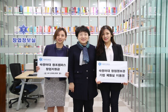 숙명여대 앙트러프러너십센터(센터장 김규동)는 8일 교내 학생회관 2층에서 학생 창업가를 위한 창업정보관 개관식을 열고 재학생 우수창업팀에게 창업장학금을 전달했다.