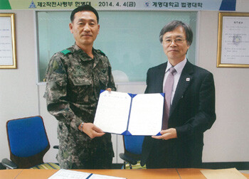 이 자리에는 계명대 법경대학 김종덕 학장, 육군 2작전사령부 헌병대 권승재 대장(대령) 등 양 기관 주요 관계자들이 참석했다.