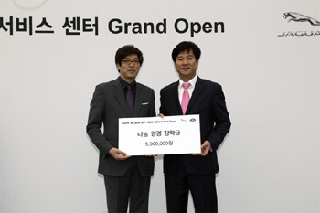 재규어랜드로버 코리아 서비스센터 오픈식이 열리는 날에 산학협약을 맺은 주)인타이어모터스 이주섭 대표는 특별히 영남이공대에 500만 원의 장학금을 기탁하기도 했다.