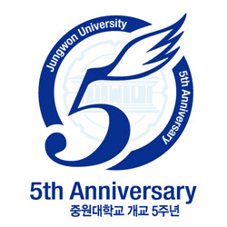 안조근 교수(산업디자인학과장)가 제작한 이번 엠블럼은 5주년을 상징하는 숫자 ‘5’와 날개 이미를 형상화해 밝은 미래로 비상하는 중원대를 상징적으로 표현하고 있다.