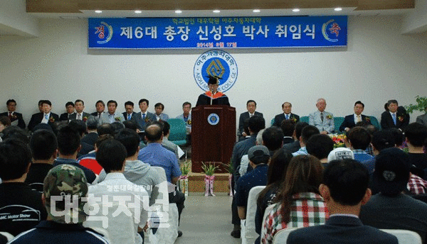 아주자동차대학 신성호 총장의 취임식이 17일 교내 자동차연구센터 2층 대강당에서 열렸다. 신 신임총장은 이날 취임식을 시작으로 오는 2018년까지 4년간 아주자동차대를 이끌게 된다.